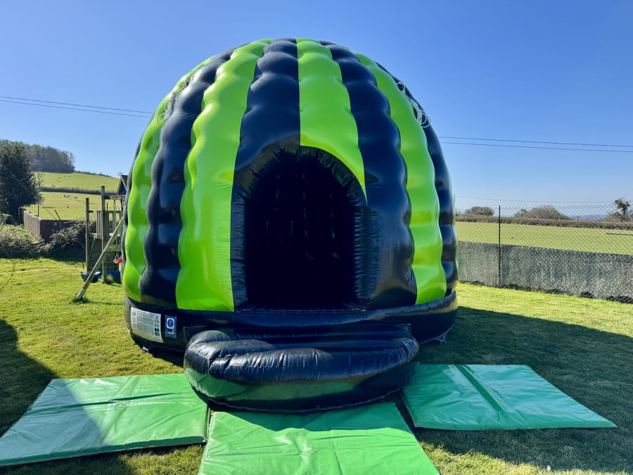 Our huge 20ft Adult Sized Disco Dome will have your guests dancing all night long! Perfect for birthdays, weddings, BBQs, corporate events and more, this adult-friendly dome welcomes kids too — entertainment for all ages. The shimmering green disco-ball effect against a darker backdrop creates instant atmosphere, while two large disco lights and a powerful built-in speaker set the scene for a bouncing nightclub experience in your garden or venue. πΊπ