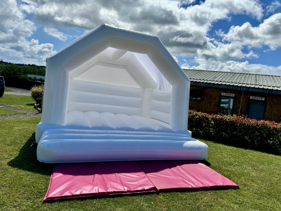 White Wedding Bouncy Castle Hire 15ft x 15ft White Wedding Castle in Torquay, Paignton, Brixham, Newton Abbot, Totnes, South Hams, Teignmouth, Dawlish, Exeter, Devon, Cornwall. ππ€