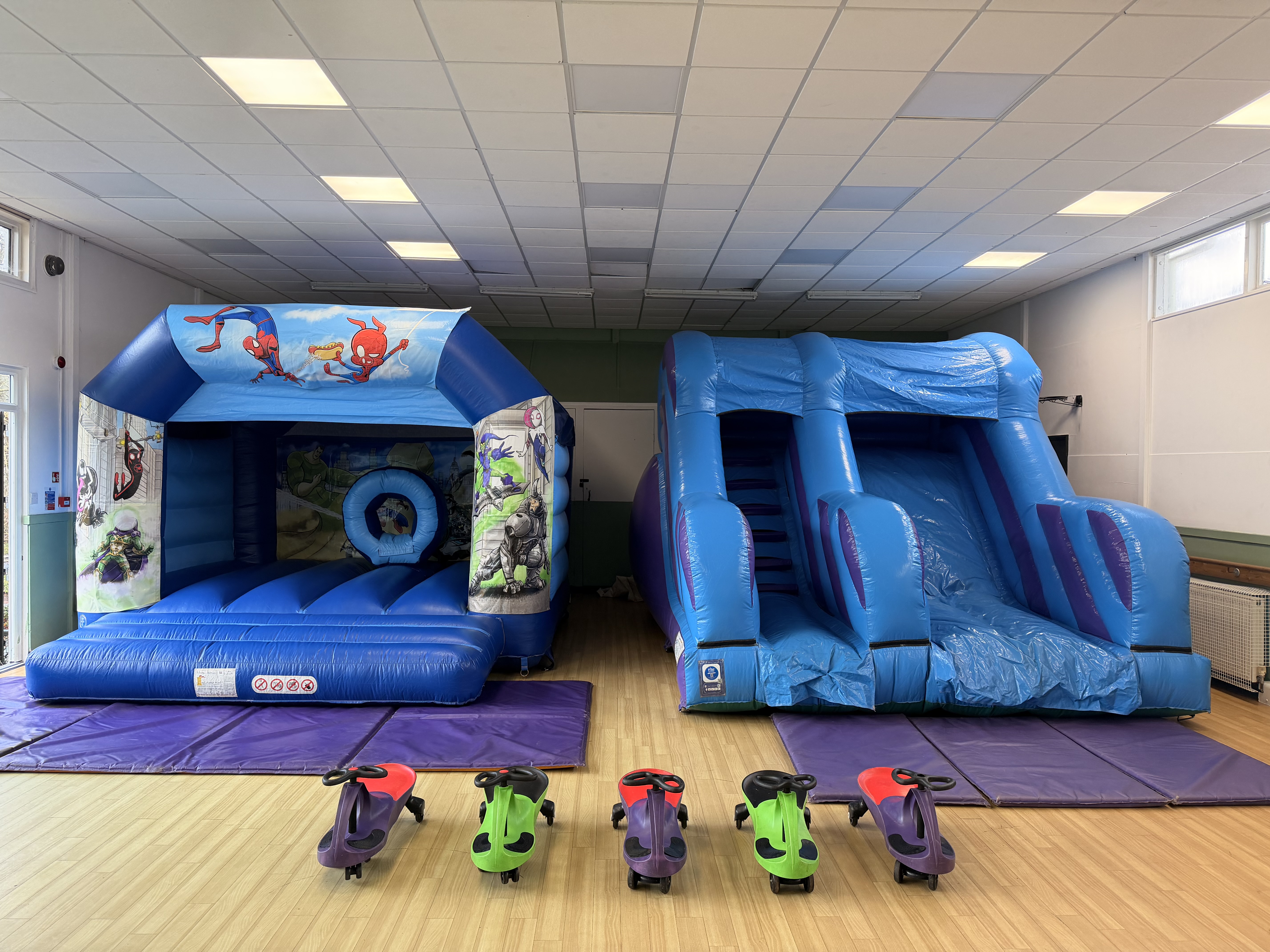First stop was to the Buckland community centre in Newton Abbot in which we setup our Spiderman bouncy castle with slide package. Also added to the package was a set of 5 Didi Cars to bring maximum fun to a special boys birthday!